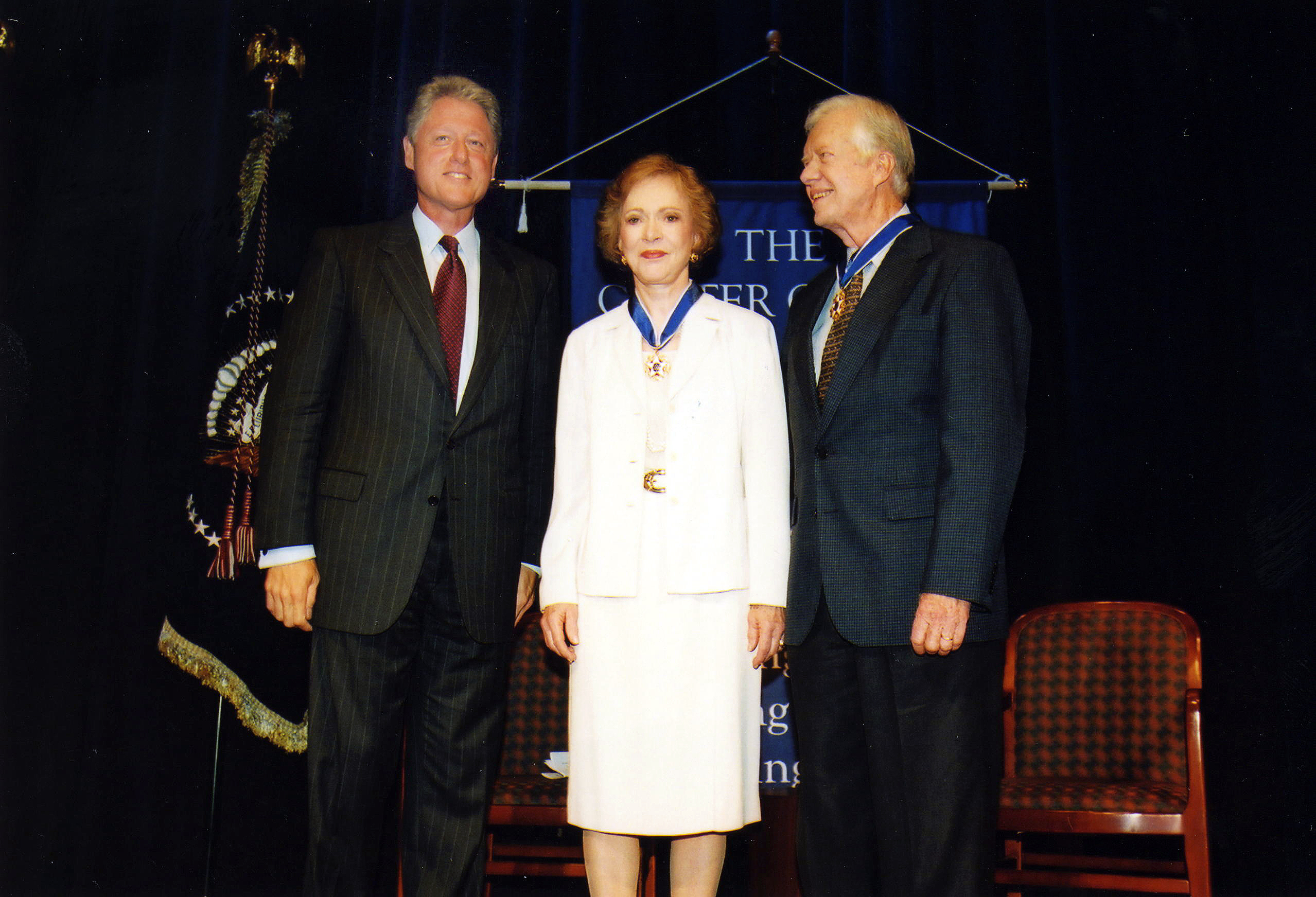 President and Mrs. Carter receive the Presidential Medal of Freedom from President Clinton at a ceremony at The Carter Center in Atlanta.